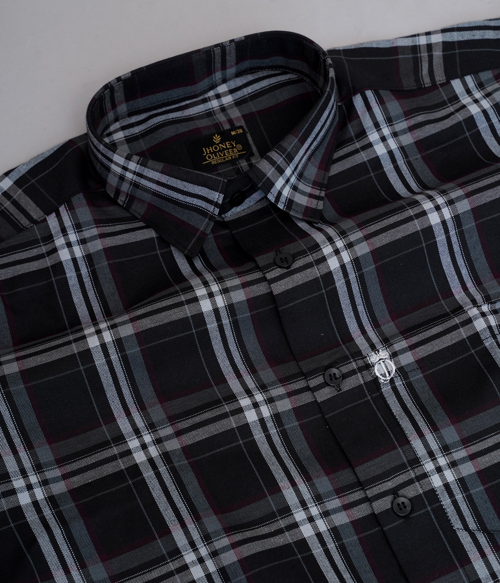 The striking combination of black, white, and maroon checks gives the shirt a modern and versatile appeal, making it suitable for office wear, business meetings, smart casual outings, and evening events. Featuring a classic collar, full sleeves, durable buttons, and precise stitching, this shirt is designed for both durability and elegance.