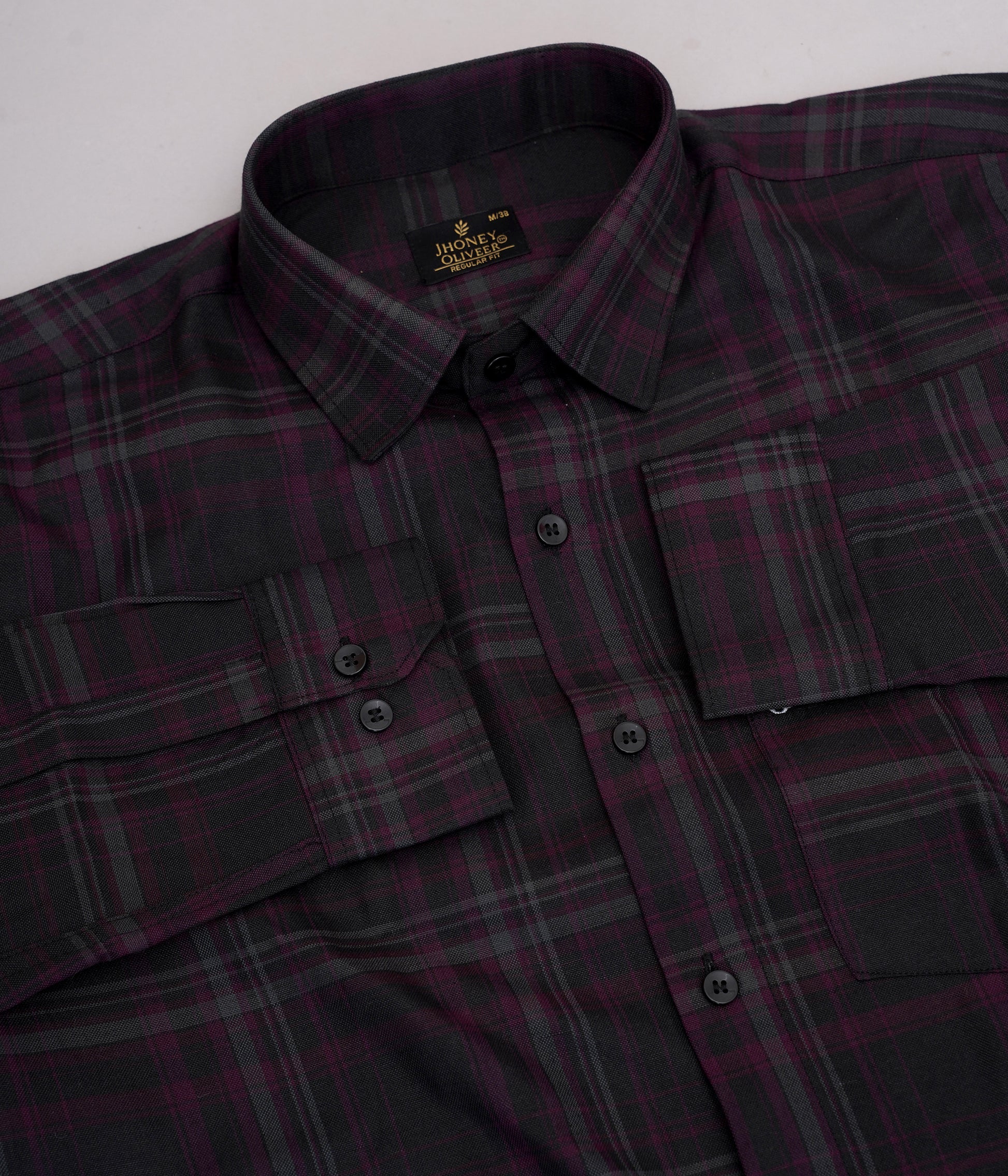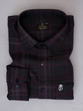 Maroon & Black Checkered Formal Shirt – Premium Regular Fit Plaid Office Wear Shirt